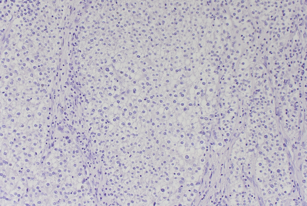手術後の組織診の免疫染色にてカルシトニン陰性、クロモグラニンAとシナプトフィジン陽性の結果より、副甲状腺癌と診断された症例であった。