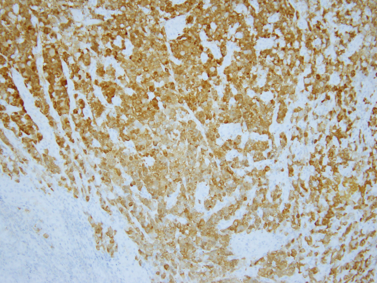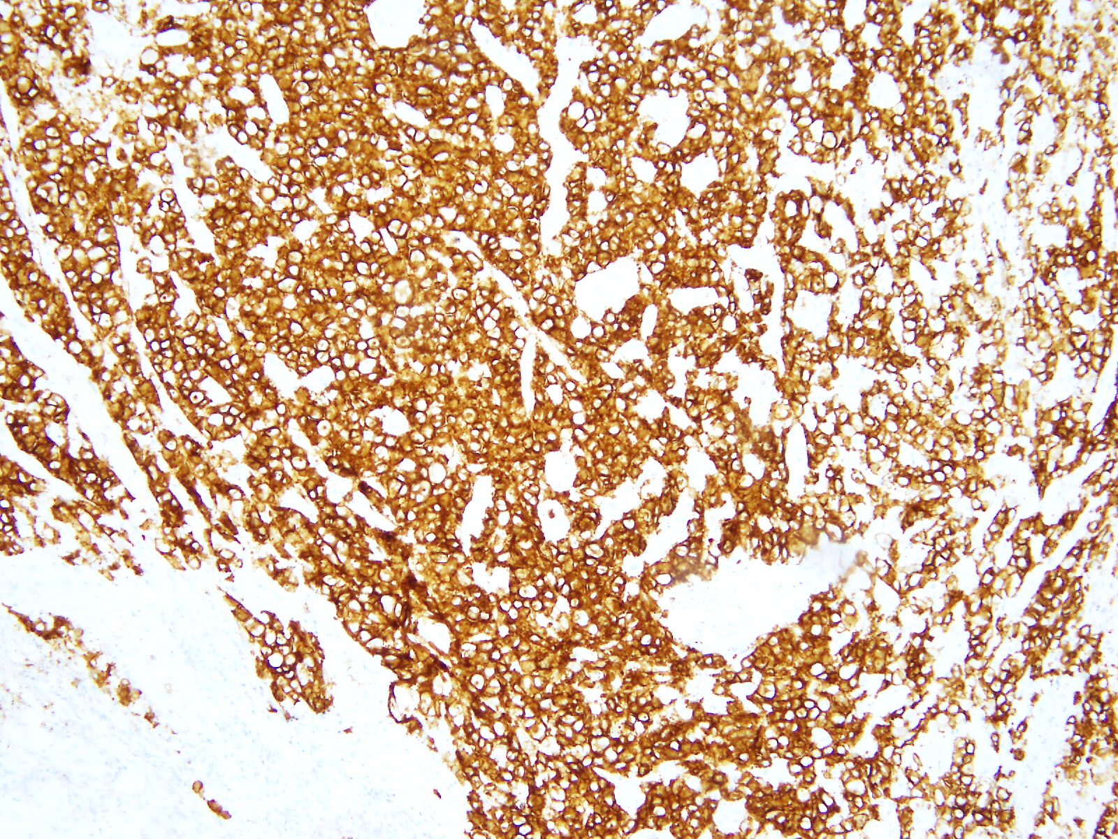 また、小リンパ球主体ではなく、異型の強い細胞が大半を占めていることからホジキンリンパ腫とも鑑別は可能である。